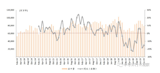 中国大陆MLCC龙头厂商都在大力投资,除了要提升产量之外,很重要的一点就是要实现产业升级,从以往的中低端产品向中高端方向迈进。原因很g单,不能总是徘徊在低水平竞争层面上。特别是未来各种新兴应用具有巨大的市场空间,而这些应用对相关元器件的性能有更高的要求,MLCC自然不会例外,没有中高端产品,未来的市场话语权和议价能力将会进一步下降。因此,必需加大投资力度,增大“量”的同时,更要提升“质”。目前,中国大陆的MLCC价格与日韩及中国台湾厂商相比,总体是最低的,另外,其几年的整体走势也不容乐观,如下图所示,无论是价格数值,还是环比增长情况,虽然呈现出了周期性的震荡,但总体来看,都是下降的态势。这显&是不利于中国本土MLCC产业健康发展的。图1:中国大陆 MLCC 价格走势(来源:中金公司)反观日本,绝大部分MLCC厂商,以及中高端的产品都聚集在那里。虽然近些年来自中国台湾和大陆的竞争越来越激烈,但日本厂商的营收和利润却一直都比较健康。如下图所示,近些年,日本出口的MLCC总量变化比较稳定,但同比变化曲线有明显下降的态势,最近c年多为负数,这说明日本厂商面对的竞争压力越来越大,对手自然集中在中国台湾和大陆,相关厂商的出货量一直在挤压日本厂商的市场份额,使得后者的同比增长处于下降态势。图2:日本MLCC出口量及同比变化情况(来源:中金公司)然而,虽然同比增长的出货量下降了,但日本厂商的营收却比较稳定,其主要原因就就在于MLCC的价格较高,且近些年a上升的态势,具体如下图所示。可见,要保持较为健康的营收和利润,以及在未来新兴应用市场保证竞争力,就必须有中高端的高附加值品类,才能在竞争中立于不败之地。这也正是中国大陆MLCC企业大力投资,发展中高端MLCC的主要原因所在。